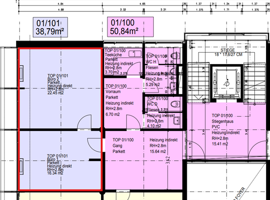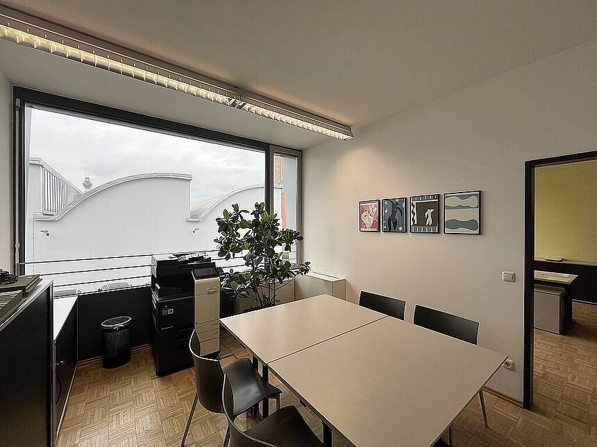 Ausstattung: Kühlung / Parkettboden / große Fensterverglasung mit Außenbeschattung / EDV-Verkabelung / Elektronisches Zutrittssystem / Teeküche / Damen- u. Herren-WC sind gemeinsam mit anderen Mietern vom Stockwerk zu nutzen / kostenlose Kundenparkplätze im Areal vorhanden / Stellplätze für Mitarbeiter können im Parkhaus um € 56,- netto p.m. zzgl. € 13,50 p.m. Betriebskostenpauschale gemietet werden.