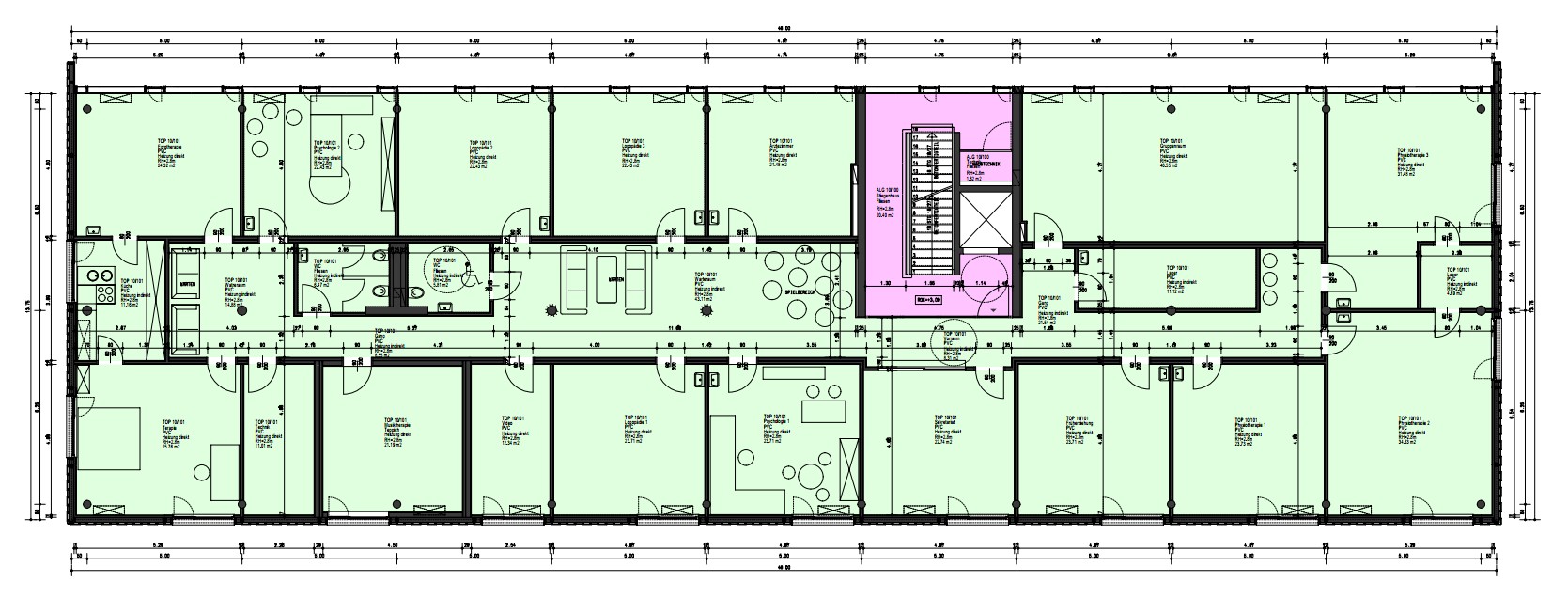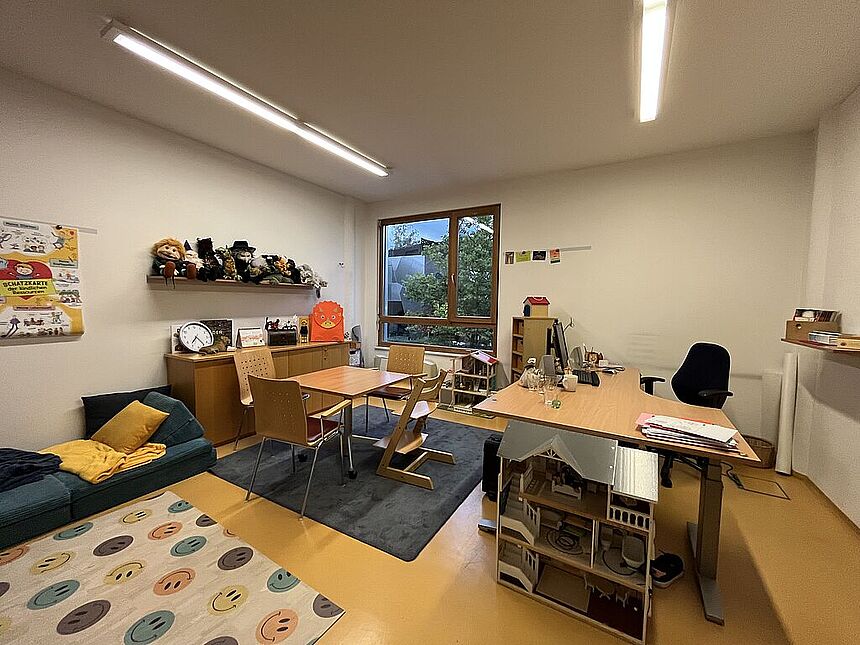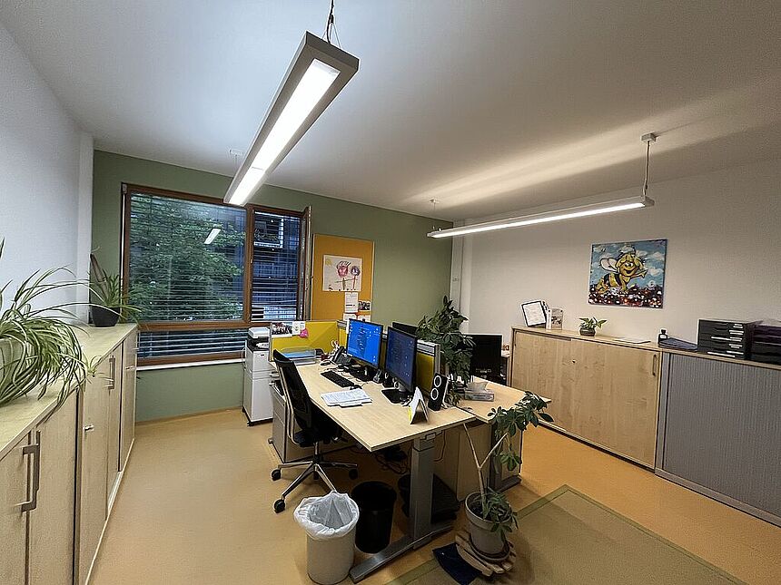 Ausstattung: Raumhöhe ca. 2,8 m / PVC-Boden / Kühlung / Außenbeschattung / EDV-Verkabelung über Bodendosen / Serverraum / elektronisches Zutrittssystem / zus. Kopier-/Lagerräume / Teeküche / WC-Anlage / barrierefreies WC / kostenlose Kundenparkplätze sind im Areal vorhanden. Stellplätze für Mitarbeiter können im Parkhaus um € 56,- netto p.m. zzgl. € 13,50 p.m. Betriebskostenpauschale gemietet werden.