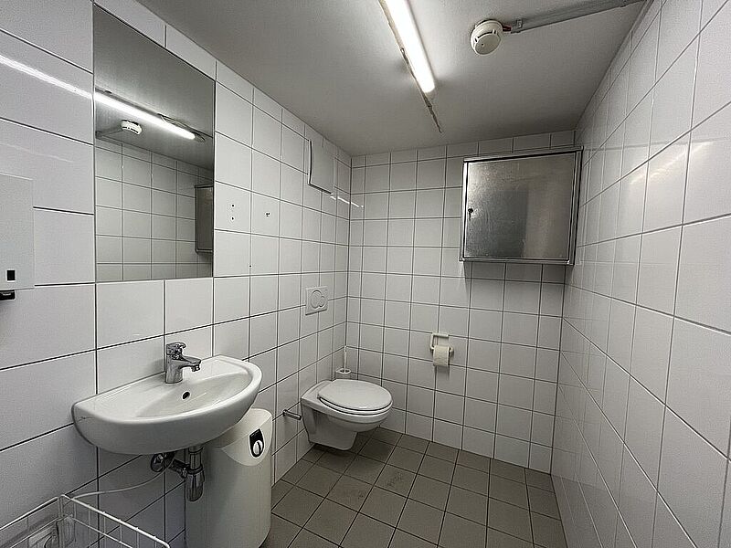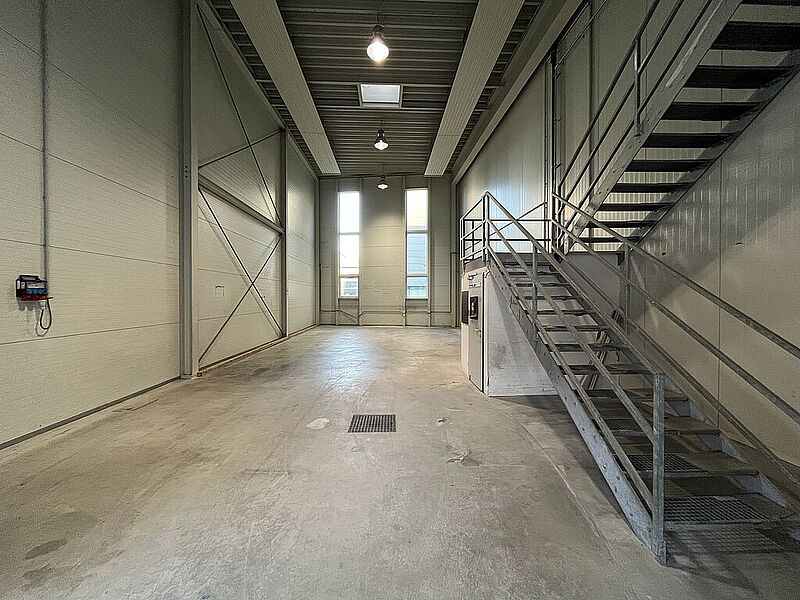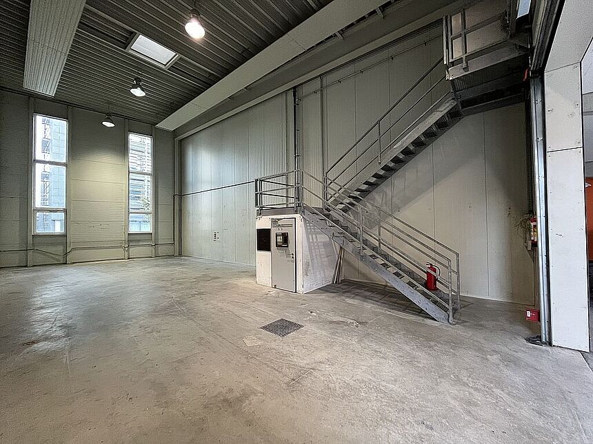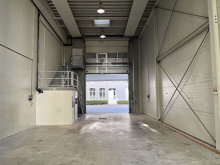 Ausstattung: Lager: Zufahrtsmöglichkeit mit LKW / Rolltor mit überdachter Ladezone / bei Bedarf beheizbar / 7,5 m Raumhöhe / Monofinishoberfläche (Nutzlast 1.000 kg/m²) / Strom- und Starkstromanschlüsse / WC-Anlage.