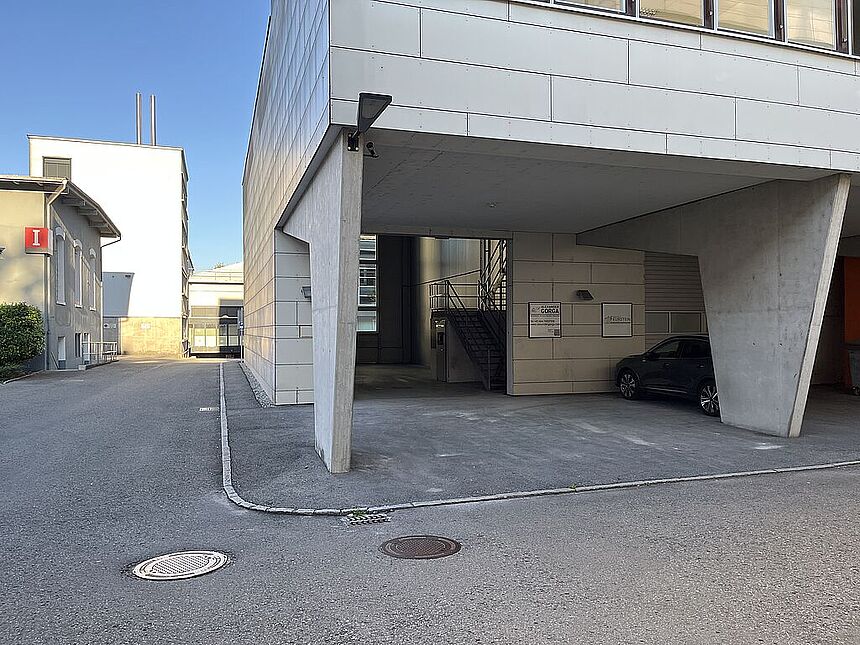 Kostenlose Kundenparkplätze sind im Areal vorhanden. Stellplätze für Mitarbeiter können im angrenzenden Parkhaus um € 56,- netto p.m. zzgl. € 13,50 p.m. Betriebskostenpauschale gemietet werden