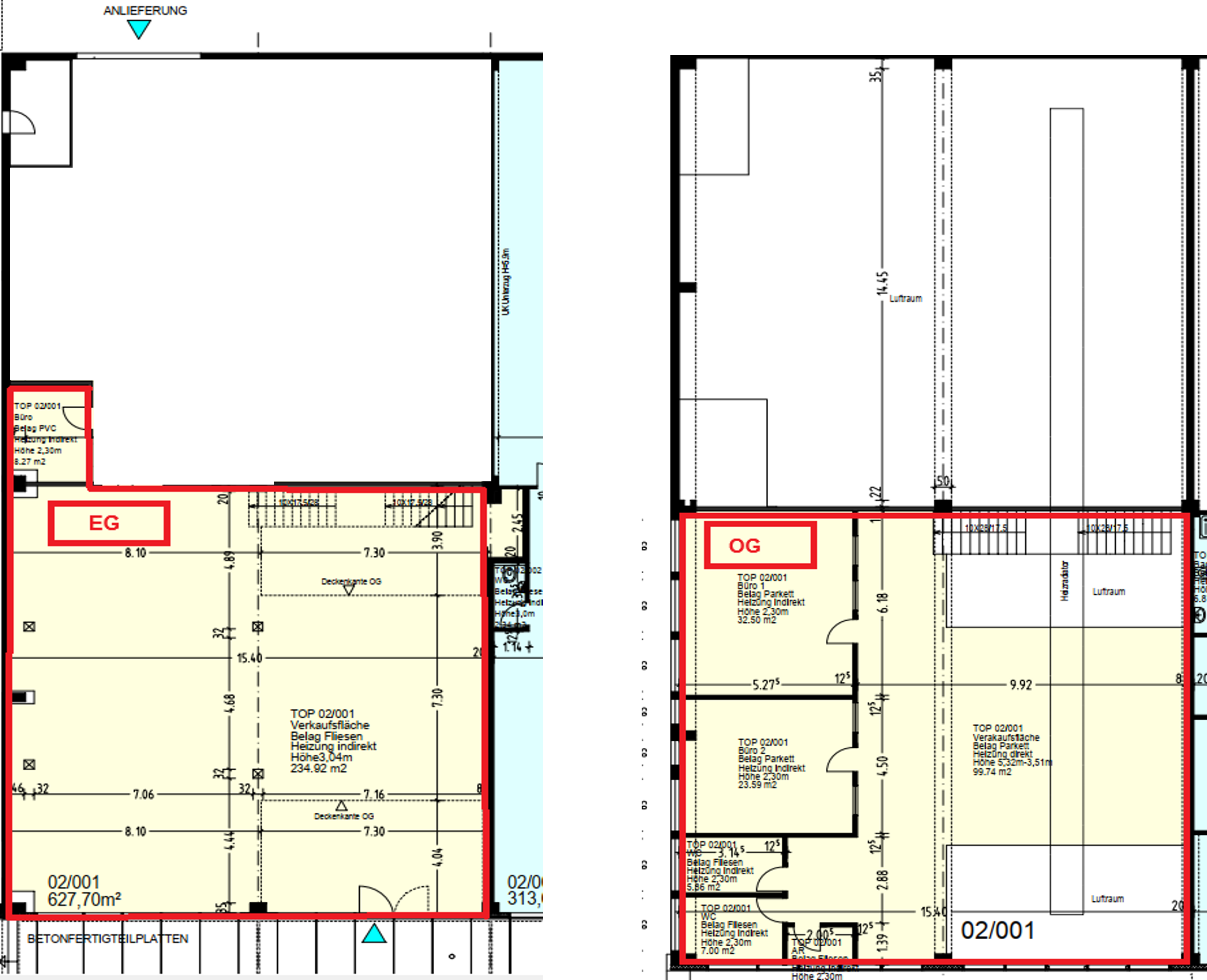 Fläche: 414 m² (aufgeteilt im EG 243 m² und 1.OG 171 m²)