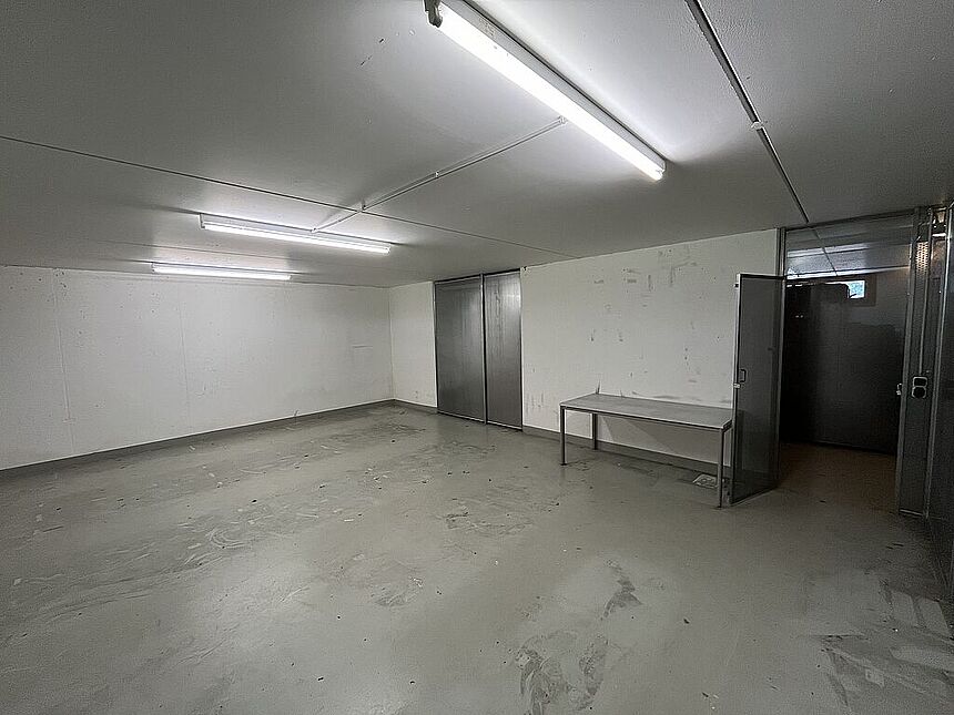 Ausstattung: Zufahrtsmöglichkeit über Rampe (B 5,0 m) / Gebäudeeingang (B 1,34 m x H 2,1 m) mit Chip-Zugang / Zugangstüre (B: 1,04 x H: 2,00 m) / Raumhöhe 2,4 m / versperrbar / unbeheizt / Vermietung nur an gewerbliche Mieter als Lager/Archiv (keine Werkstatt o.ä.)